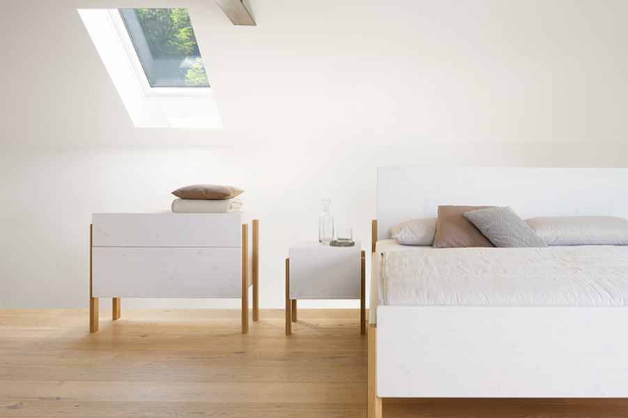 Bestechend schnörkellos. Die Linie New York lädt zum Spiel mit Oberflächen und Materialien ein. Die Bettschubläden bieten viel unsichtbaren Stauraum.