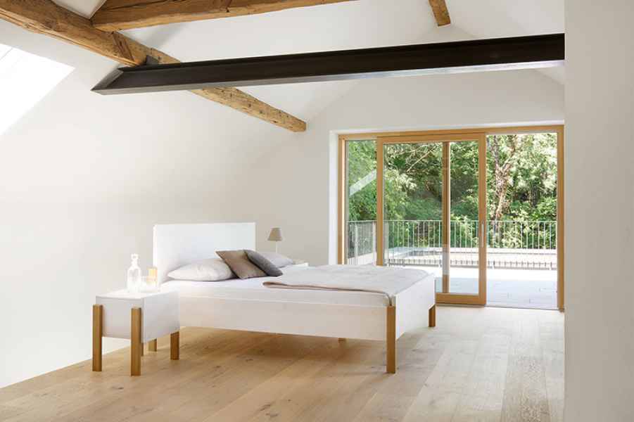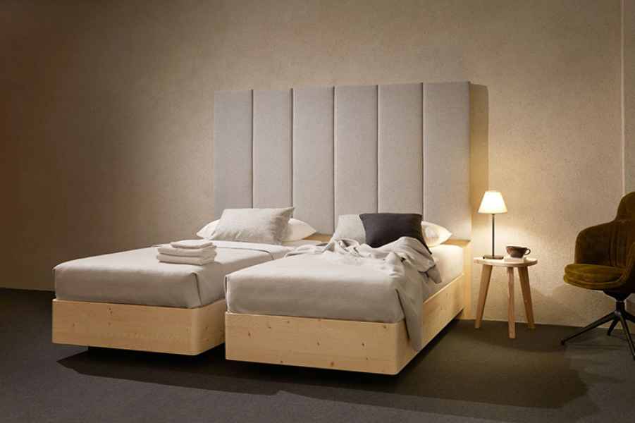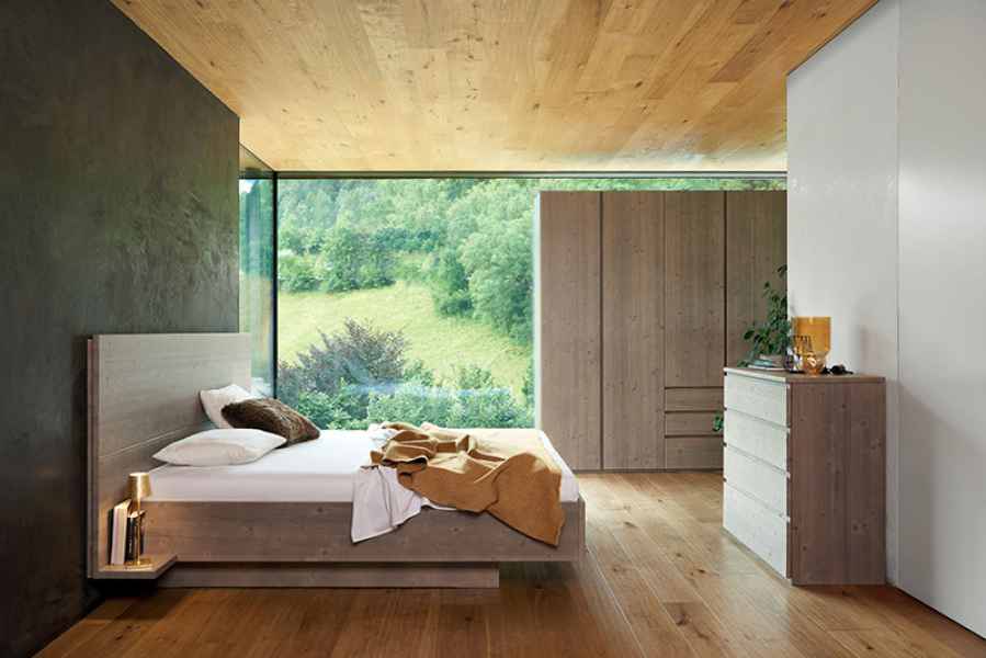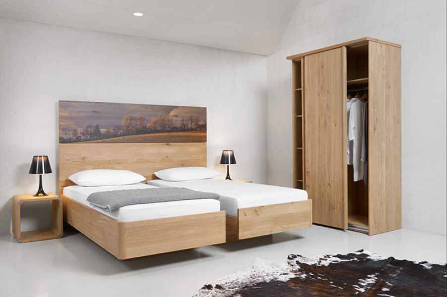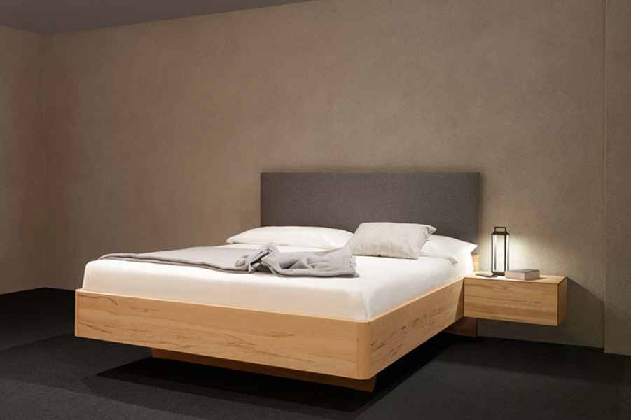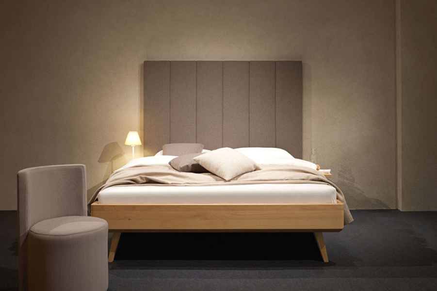 Frei schwebend, für eine schwerelose Nacht. Die Linie Gardena holt die Ruhe der Natur ins Schlafzimmer. Mit sanft gerundeten Ecken und einem Kopfteil in vielerlei Variationen. Das Kopfteil in Massivholz oder mit Lodenstoff bezogen.