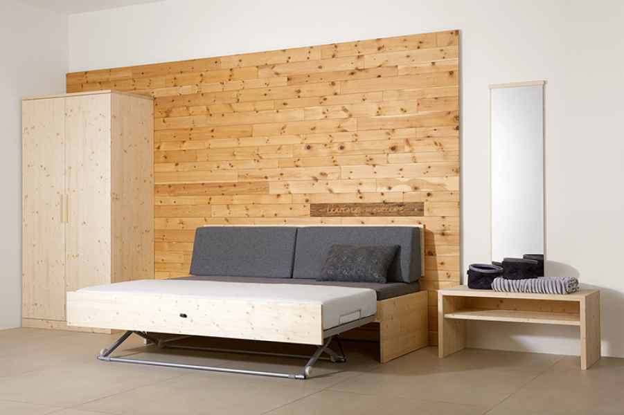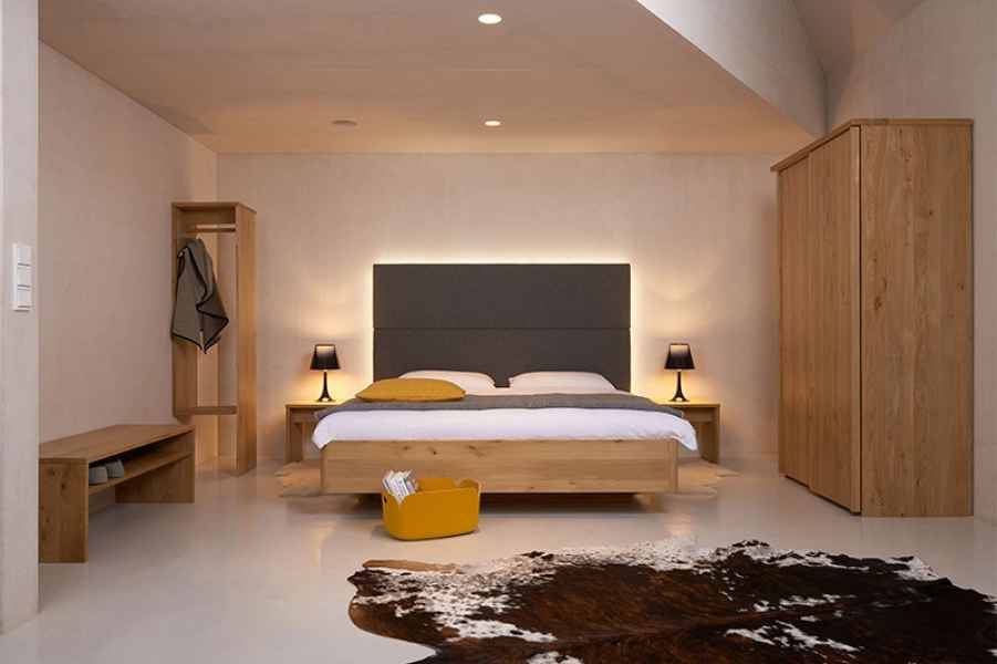 Auf das Wesentliche konzentriert: Die Linie Ladino überzeugt mit ihrer schlichten Ästhetik, die für ein ruhiges Ambiente sorgt. Das Naturholz spricht für sich.