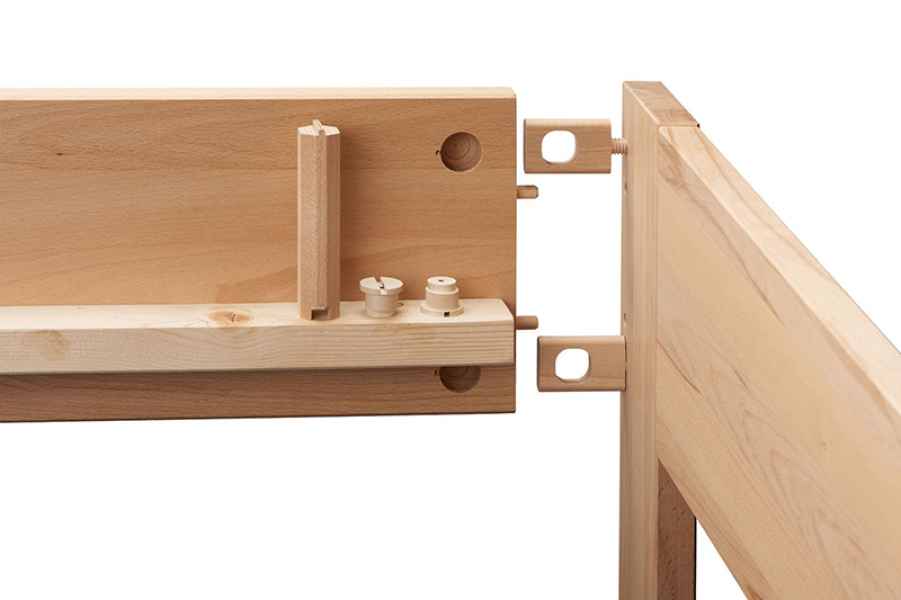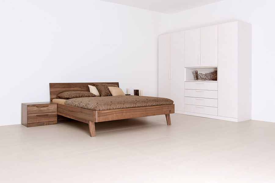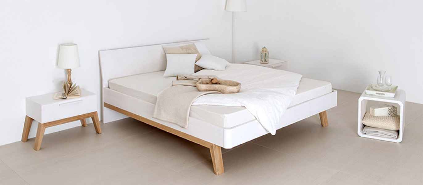 Natürlich und formschön – genießen Sie den erholsamen Schlaf in einem Bett aus komplett natürlichen Materialien. Verschiedene Holzarten können bei diesem Modell miteinander kombiniert werden.